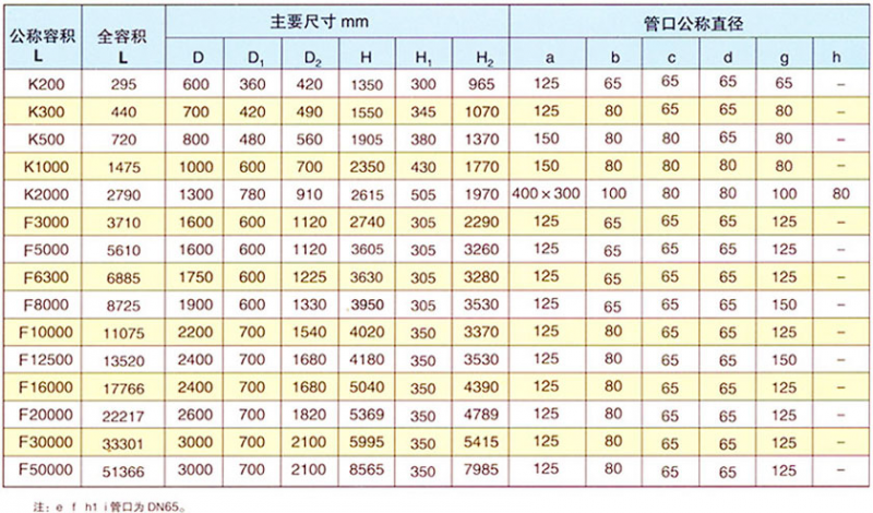 搪玻璃閉式反應(yīng)釜參數(shù)表