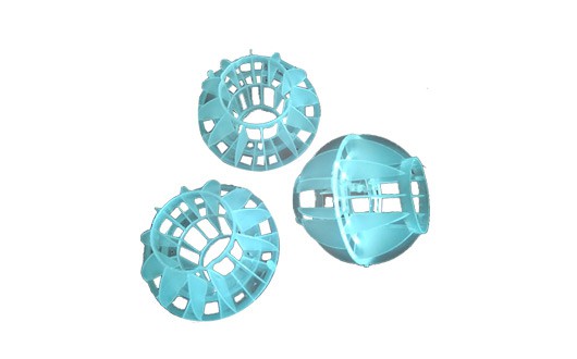 聚丙烯空心球氣速高,葉片多,阻力小;比表面積大,可充分解決氣液交換;具有阻力小操作彈性大等特點。廣泛應(yīng)用于除氯氣、 除氧氣、除二氧化碳?xì)獾拳h(huán)保設(shè)備中。采用聚丙烯塑料制成球狀,在球中部沿整個周長有一道加固環(huán),環(huán)的上下各有十二片球瓣, 沿中 心軸呈放射形布置,適用于二氯化碳脫氣塔,接觸反應(yīng)塔等裝置。