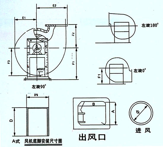 SY-731-Ⅱ型PP離心風(fēng)機(jī)為全塑無鋼支座,大機(jī)型為8A號,內(nèi)機(jī)出口360°任意轉(zhuǎn)向,進(jìn)出風(fēng)口按照SY-731-Ⅰ型表,安裝尺寸由我廠另提供。